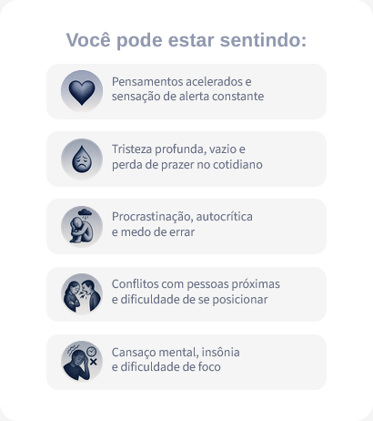 Sessões personalizadas para ajudar a lidar com ansiedade, depressão e problemas interpessoais.